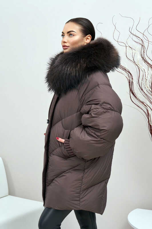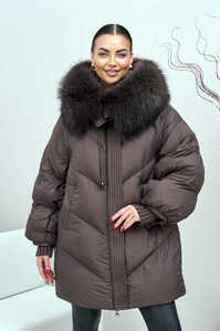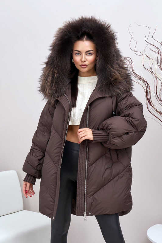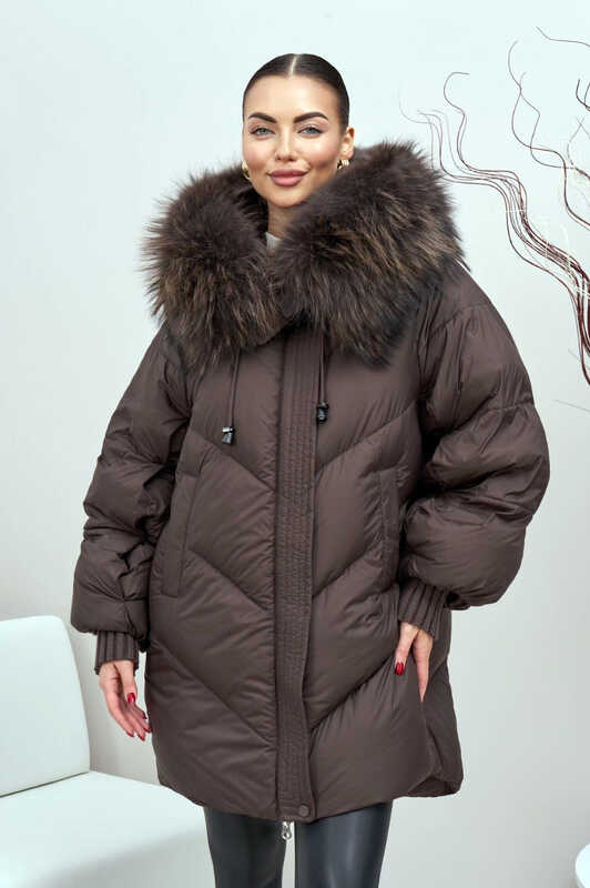 Этот стильный пуховик коричневого цвета от Vivilona идеально подойдет для холодных зимних дней. Он украшен большим мехом длинношерстного енота внутри капюшона, придающим особую роскошь и тепло. Пуховик выполнен из высококачественного материала с пуховым наполнителем, обеспечивающим отличную теплоизоляцию. На рукавах есть пуховая вставка, добавляющая элегантности и защиты от ветра. Трикотажные манжеты предотвращают проникновение холода. Застежка — надежная молния в сочетании с кнопками, что делает этот пуховик не только стильным, но и очень практичным. Это идеальный выбор для зимы 2025–2026, сочетающий красоту, комфорт и тепло.