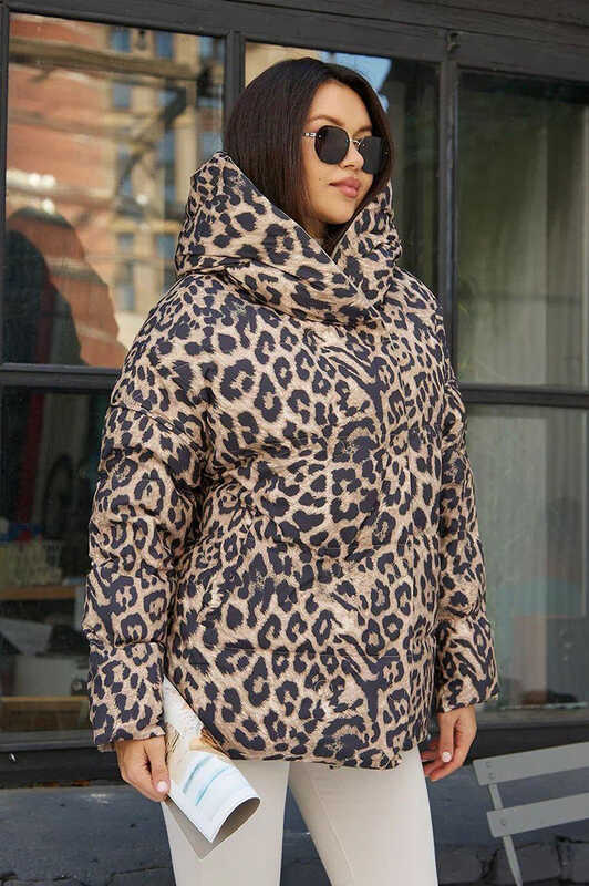 Женский пуховик 2025-2026 двусторонний оверсайз леопардовый