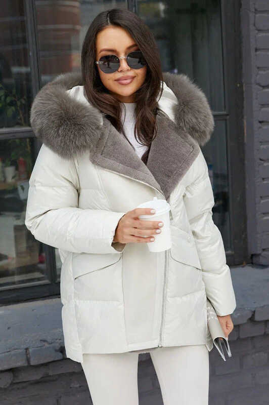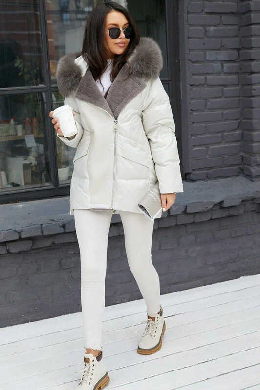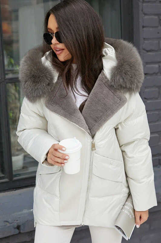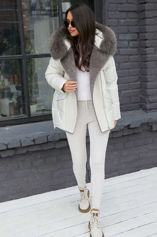 Уточненный пуховик 2025 изящнейшего прямого лекала с большим набором декоративных элементов. Внутри пух, обеспечит оптимальный тепловой режим в любую погоду, воротник украшает мех финского аукционного песца. Молния металлическая, фирменная.