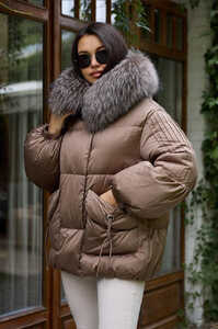 Женская зимняя куртка Vo tarun с мехом енота песочная купить в Москве