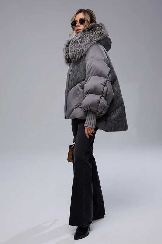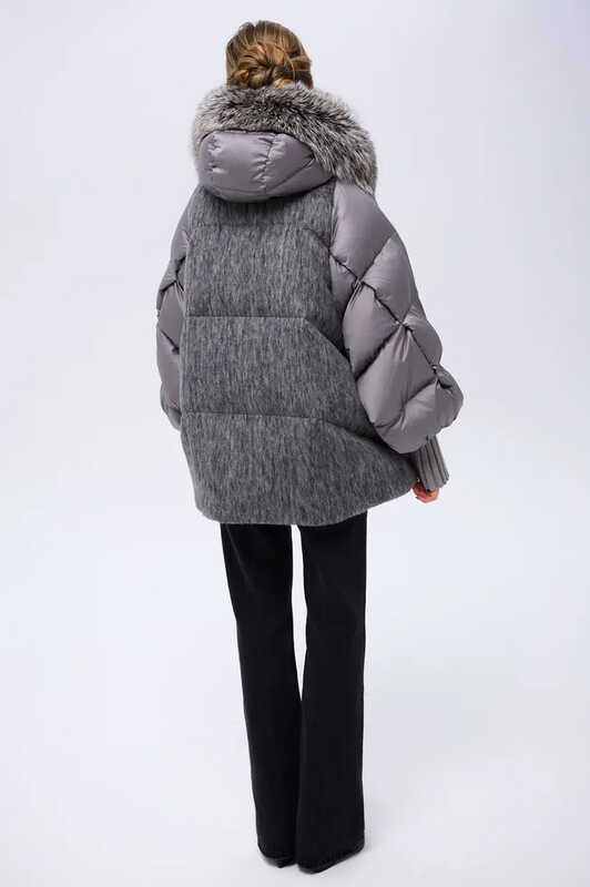 Это зимнее пальто-пуховик в стиле оверсайз, выполненное из валяной шерсти, что придает изделию особую теплоизоляцию и элегантный внешний вид. Меховый капюшон добавляет дополнительный уют и защиту от холода, а его мех выполнен в стиле Thomas Bieber, что подчеркивает модный и роскошный образ. Внутри пух и перо обеспечивают высокую теплоизоляцию, делая пальто идеальным выбором для зимних прогулок. Крой оверсайз в стиле бомбер создает свободный, комфортный силуэт, подчеркивающий современный стиль и практичность.