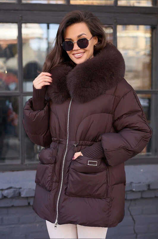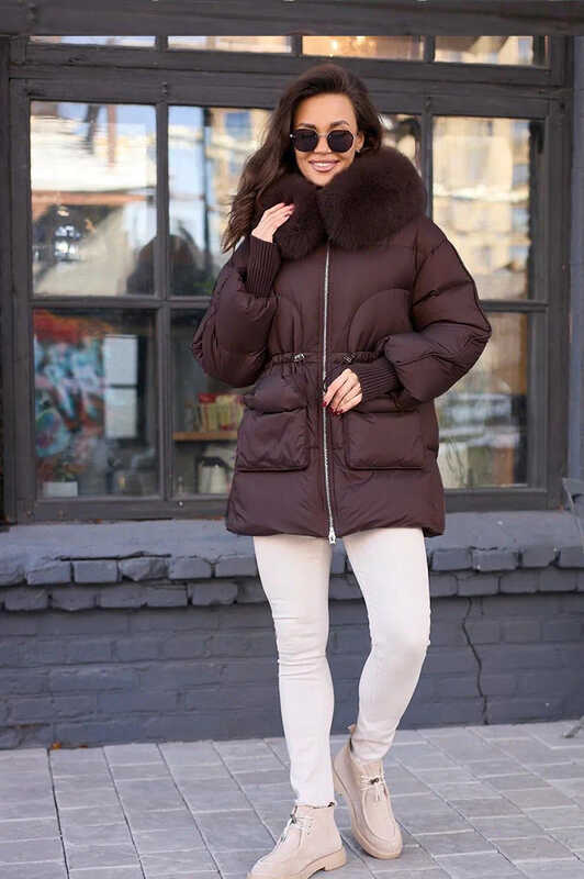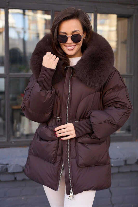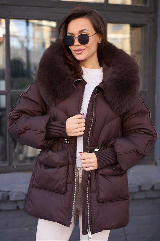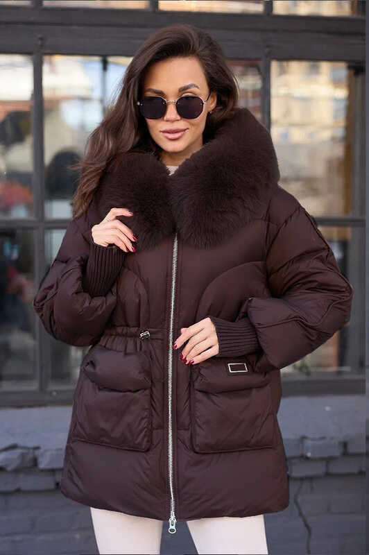 Зимнее пальто - пуховик с меховым капюшоном из песца