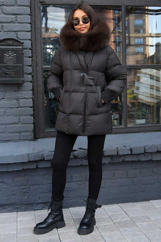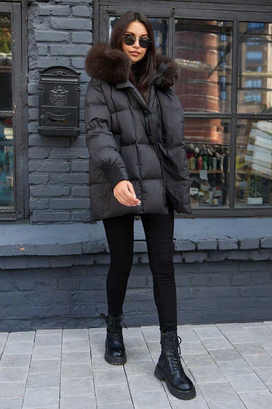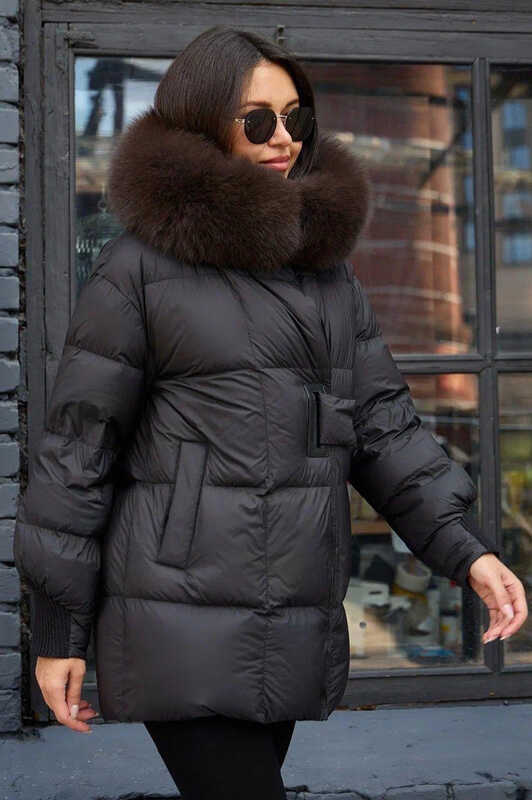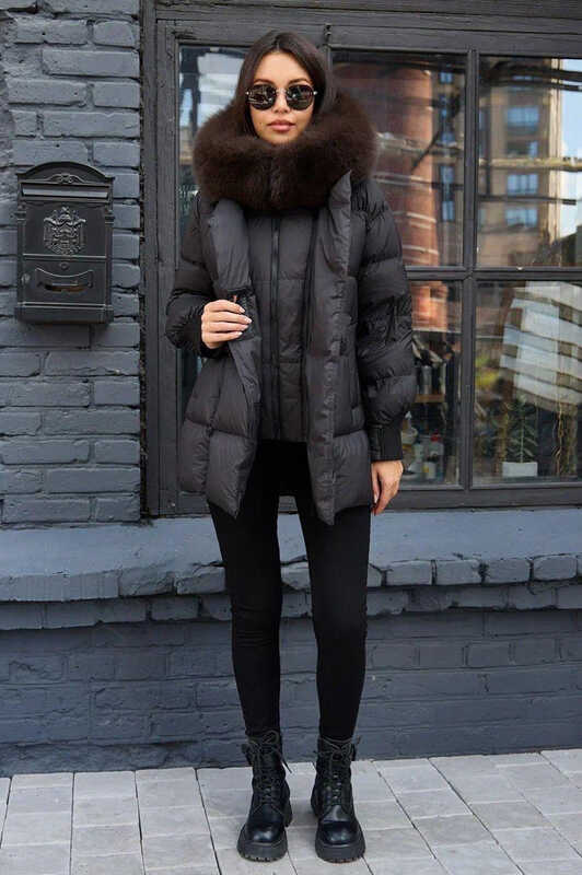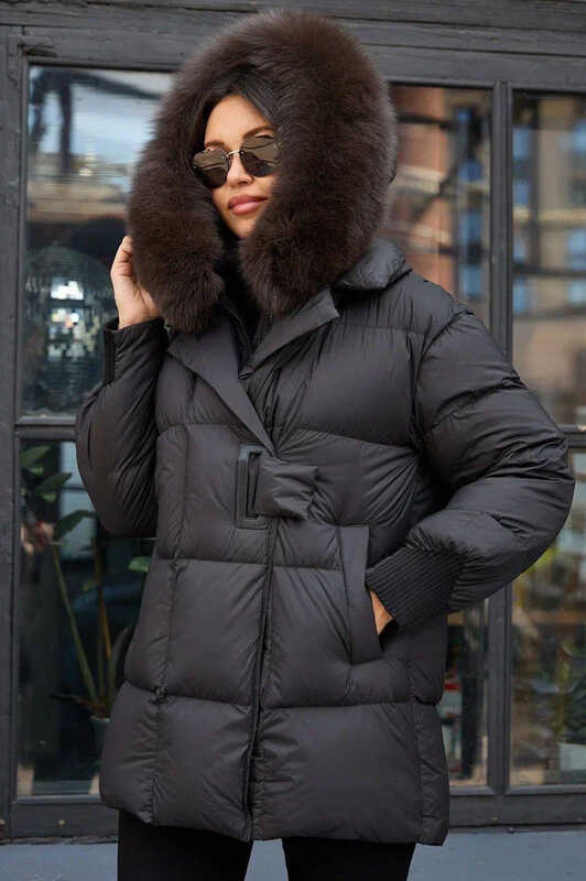 Зимняя куртка с песцом внутри черный цвет купить в Москве