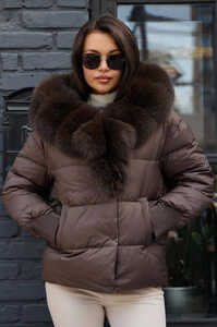 Модная женская куртка пуховая Vivilona коричневая