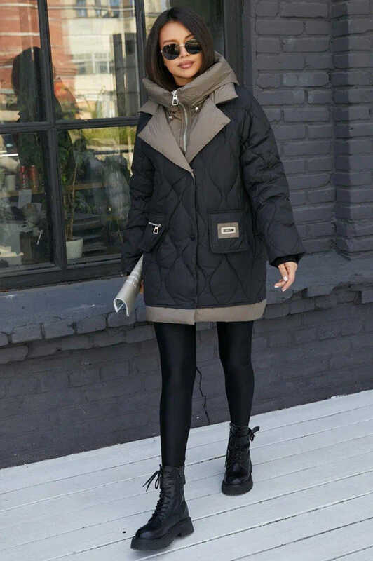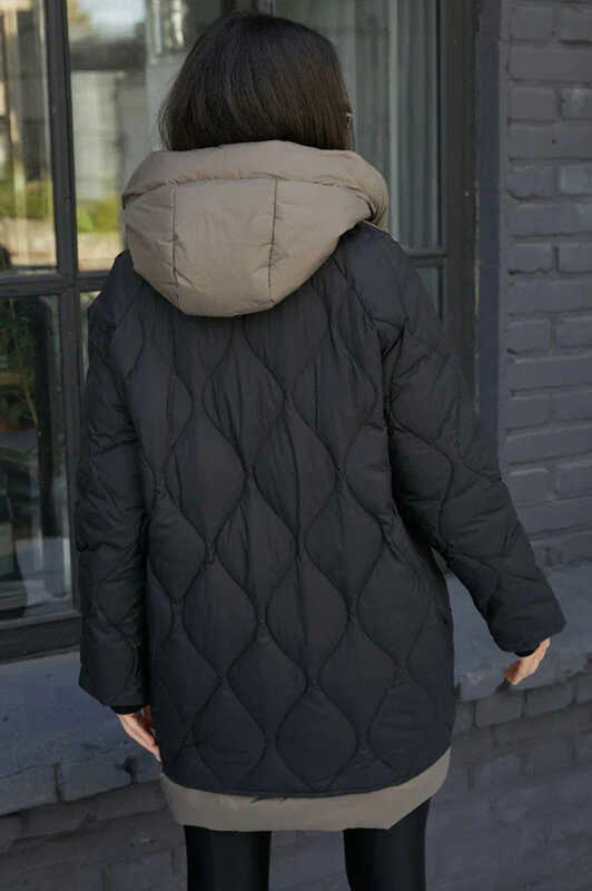 Зимняя женская пуховая куртка Bogerner черного цвета с серым внутренним напольным слоем. Оснащена капюшоном с регулируемыми тесемками для удобной подгонки. Внутри использован качественный наполнитель из пуха и пера для максимального тепла и легкости. На поверхности выполнена эффектная волнообразная строчка, придающая куртке современный стиль. Втачные карманы обеспечивают практичность и комфорт. Эта куртка идеально подходит для зимних прогулок, сочетая тепло, функциональность и модный дизайн.
