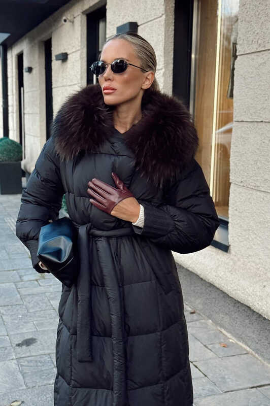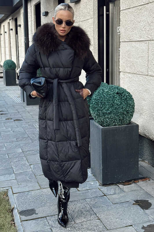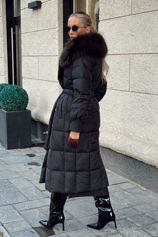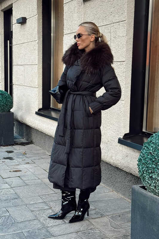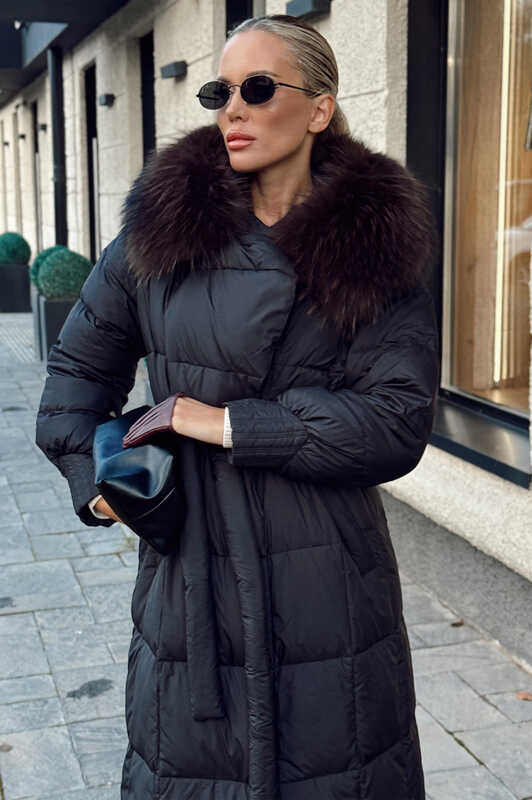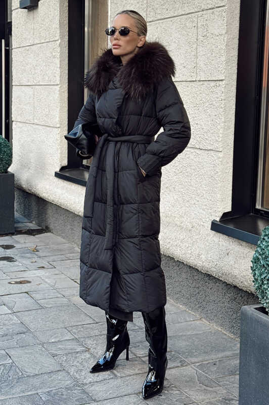 Длинный зимний пуховик vivilona с меховым воротником