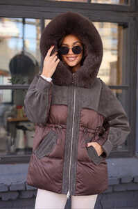 Зимнее пальто - пуховик с меховым капюшоном из песца