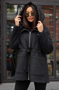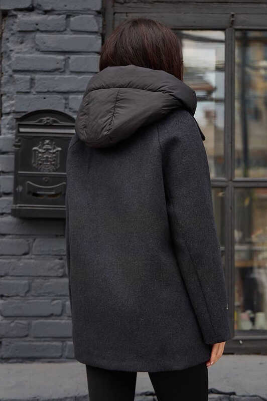 Зимний пуховик оверсайз с манишкой и капюшоном
